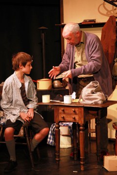 Tom and Will then sing the title song (link above). Having instructed Will to call him Tom, Will wistfully wishes 'Mr Tom' goodnight as he snuggles under the blanket. Meanwhile, Tom struggles to come to terms with what has been thrust upon him - on the one hand recognising that the boy is in distress and in need of material and emotional support but at the same time reluctant to have his routine of 40 years disturbed. He decides to take Will to the vicarage the next day for Mrs Peters to take care of him. But then, on noting how flimsy his shoes are, he vows to get him some boots. Tom is clearly perplexed and torn between the bubble of his solitary life and the needs of the boy. 'Goodnight Mr Tom' concludes with Tom deciding that Noah's ark would be a good Bible story to tell him in the morning and Will slips off to sleep, smiling broadly.