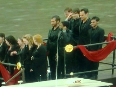Following the Choir's performance in the Diamond Jubilee Thames Pageant, the RCM singers made several TV appearances. They were billed as one of the highlights of the Jubilee on the BBC, when Oscar joined several of the female singers to talk about their cold, wet experience on the Thames. Watch the interview here.